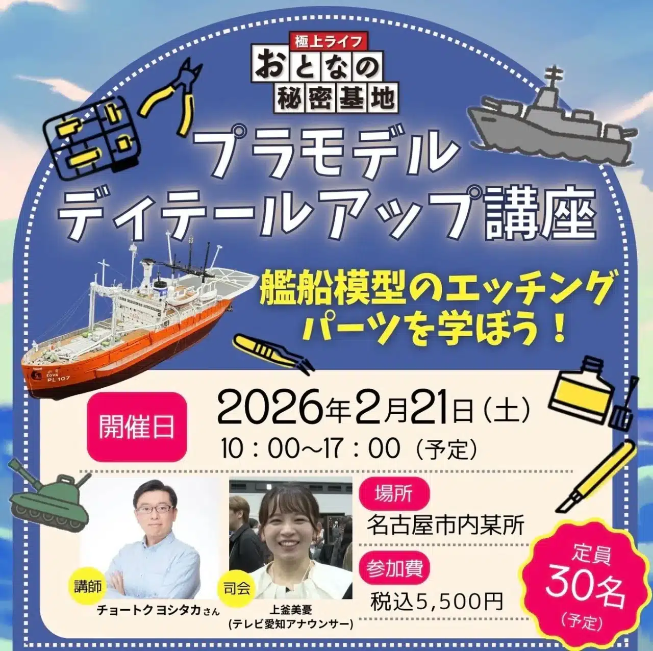 艦船模型はもちろん、ガンプラ、エアモデル、AFVなど、あらゆるジャンルの模型製作を手がけるプロモデラーです。X(旧Twitter)のフォロワーは1.5万人を超える人気ぶりで、ホビージャパンやモデルアートなどの模型誌でも数多くの作例を担当しています。初心者にも分かりやすい丁寧な解説には定評があり、模型関連のYouTubeチャンネルにも多数出演しています。ガンプラの製作にも精通しているプロの技を、この機会にぜひ学んでみませんか。