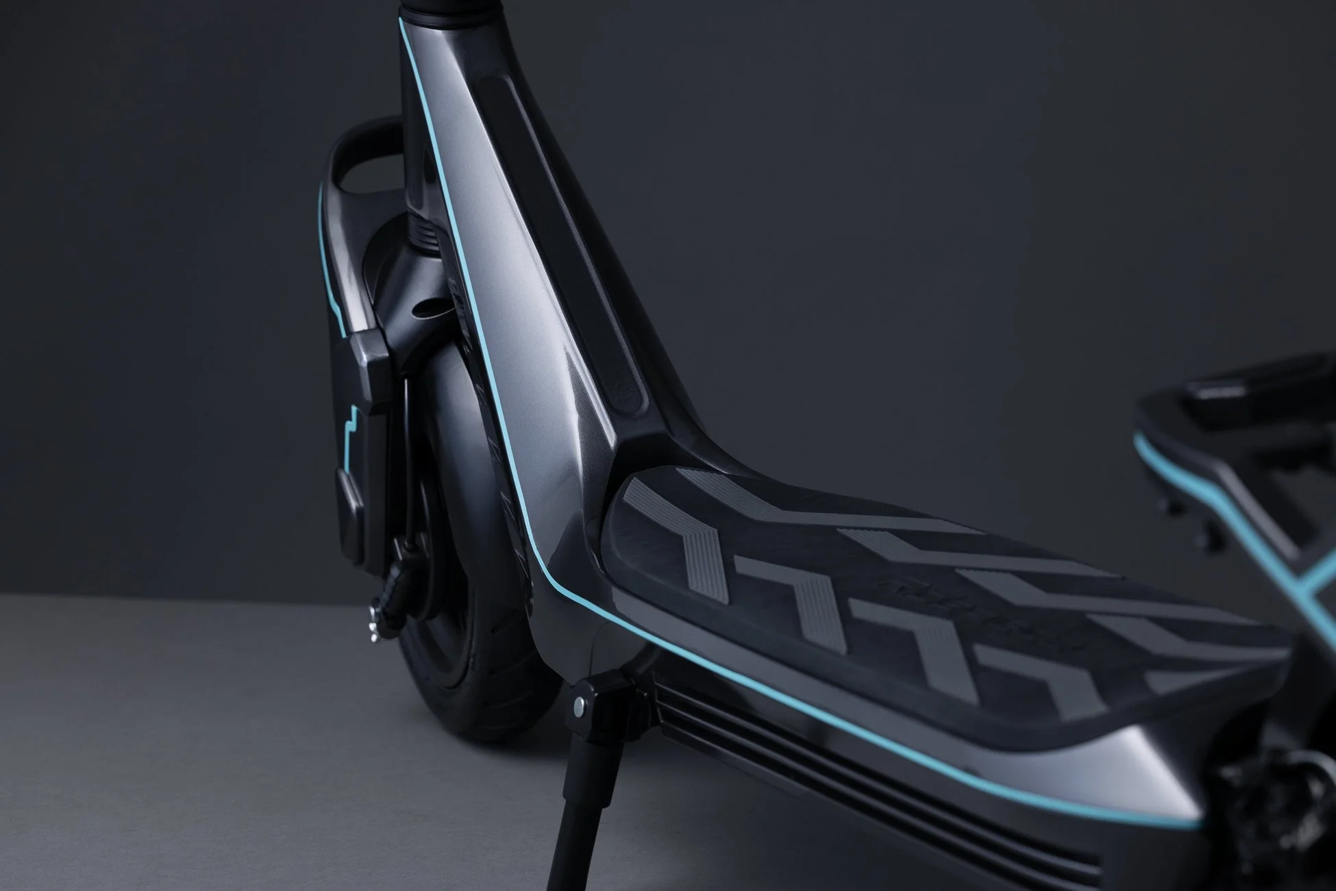 日本の住宅事情や交通事情を考慮し、走行時の快適性と取り回しのしやすさを両立する機体サイズを追求。狭い路地での小回りや、屋内への持ち込みやすさを考慮しながらも、走行時の安定性を確保するため、1,120mmの全長と848mmのホイールベースを採用しています。デッキ部の全幅は545mmと余裕があり、長時間の走行でも負担がかかりにくい設計です。8.5インチのホイール径は走破性と機動性を両立し、コンパクトながらも快適な乗り心地を実現しています。