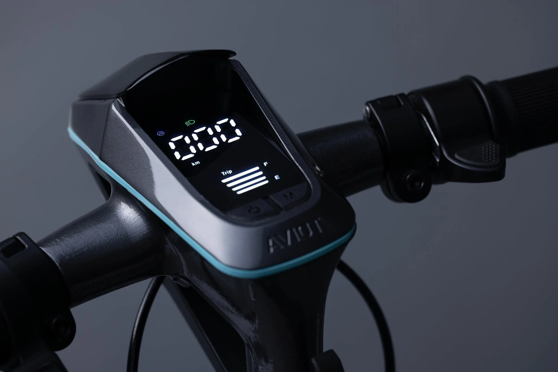 高い視認性と操作性を実現したインストルメントパネル: 走行モード、スピードメーター、走行距離、バッテリー残量、ウィンカー表示が一目で確認できるLEDパネルを採用。