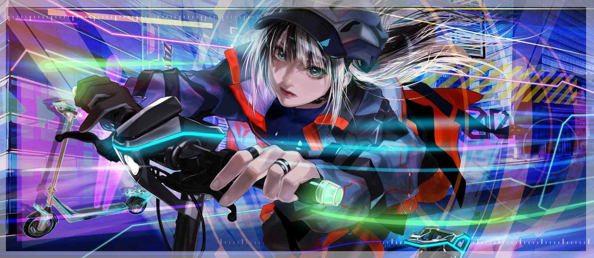 河森氏の真骨頂とも言える、無駄を排した流線的なフォルムに、各部のコンポーネントにはメカニカルな意匠が取り入れられています。先進性、機能性、そして日本のメカニカルデザインの魅力が全て内包されたデザインは、既存の電動モビリティにはない新たな価値を提案します。コクピット周りのスムーズかつ先鋭的なシルエットと視認性の高いインストルメントパネル、取り回し時の利便性を考慮したグリップ一体型フロントカウルなど、細部までこだわりが詰まっています。